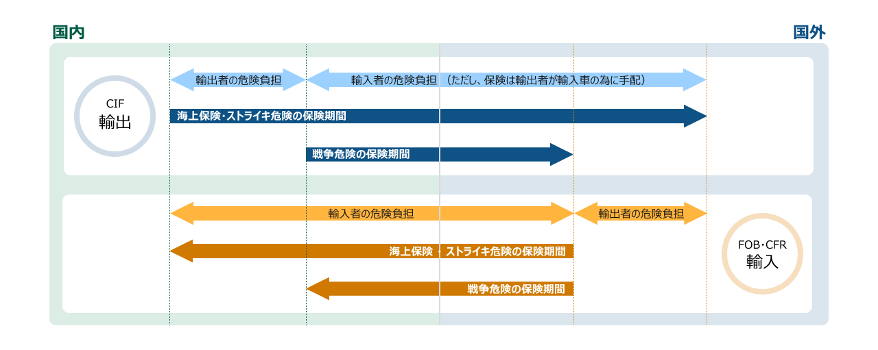 戦争危険については、原則として海上(または航空)輸送中のみが保険期間となります。